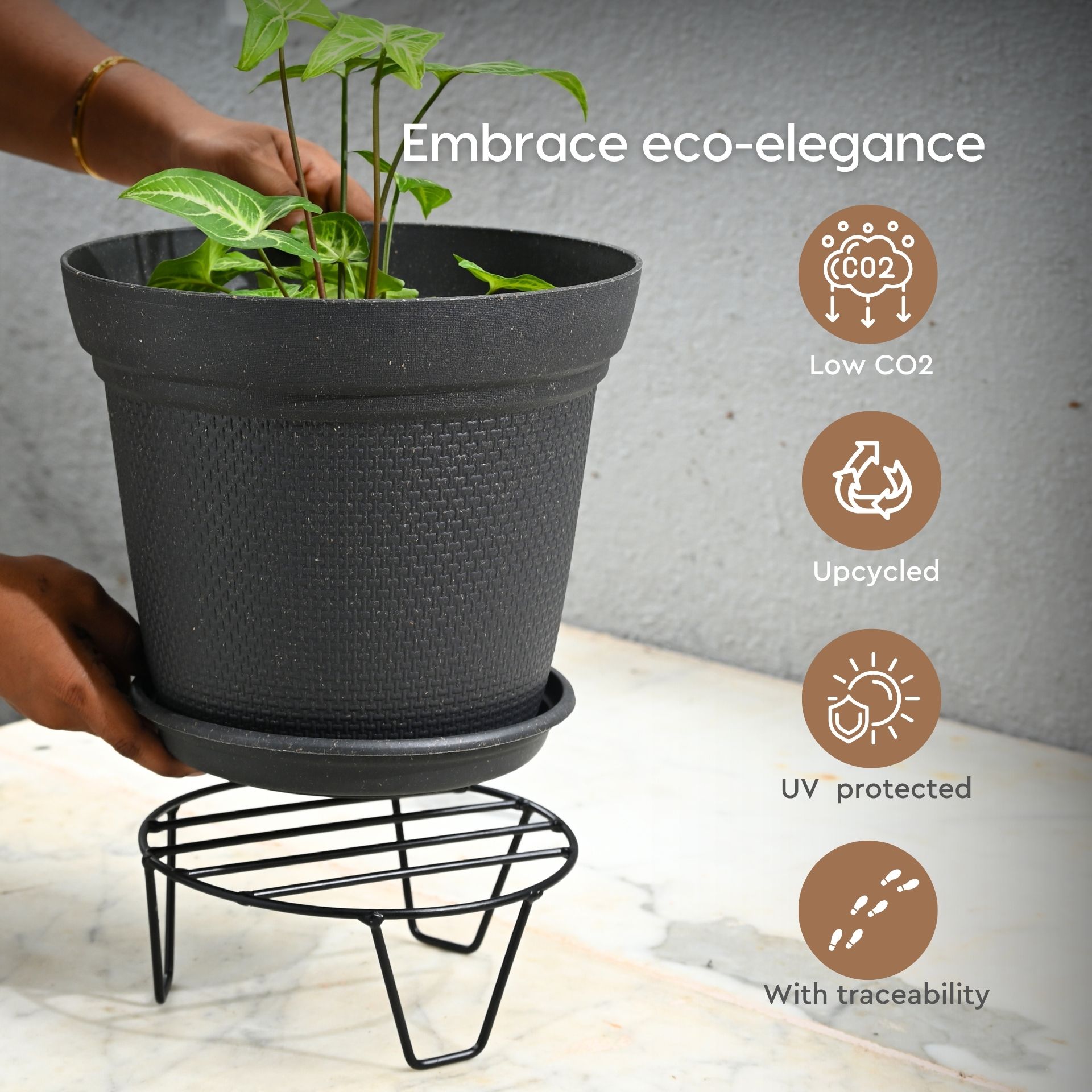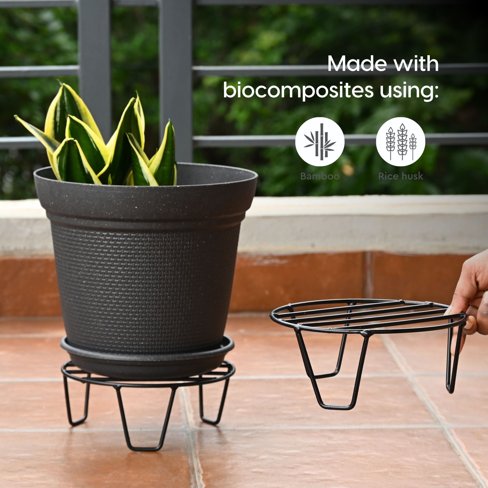 Earth-Friendly Aura 10 Inch pots & Planters With Stand | Set of 2 | Bamboo Based | UV Protected | for Indoor, Home Decor, Outdoor, Balcony & Garden
