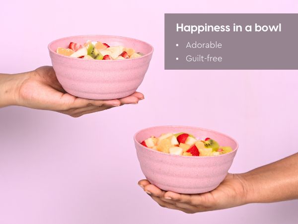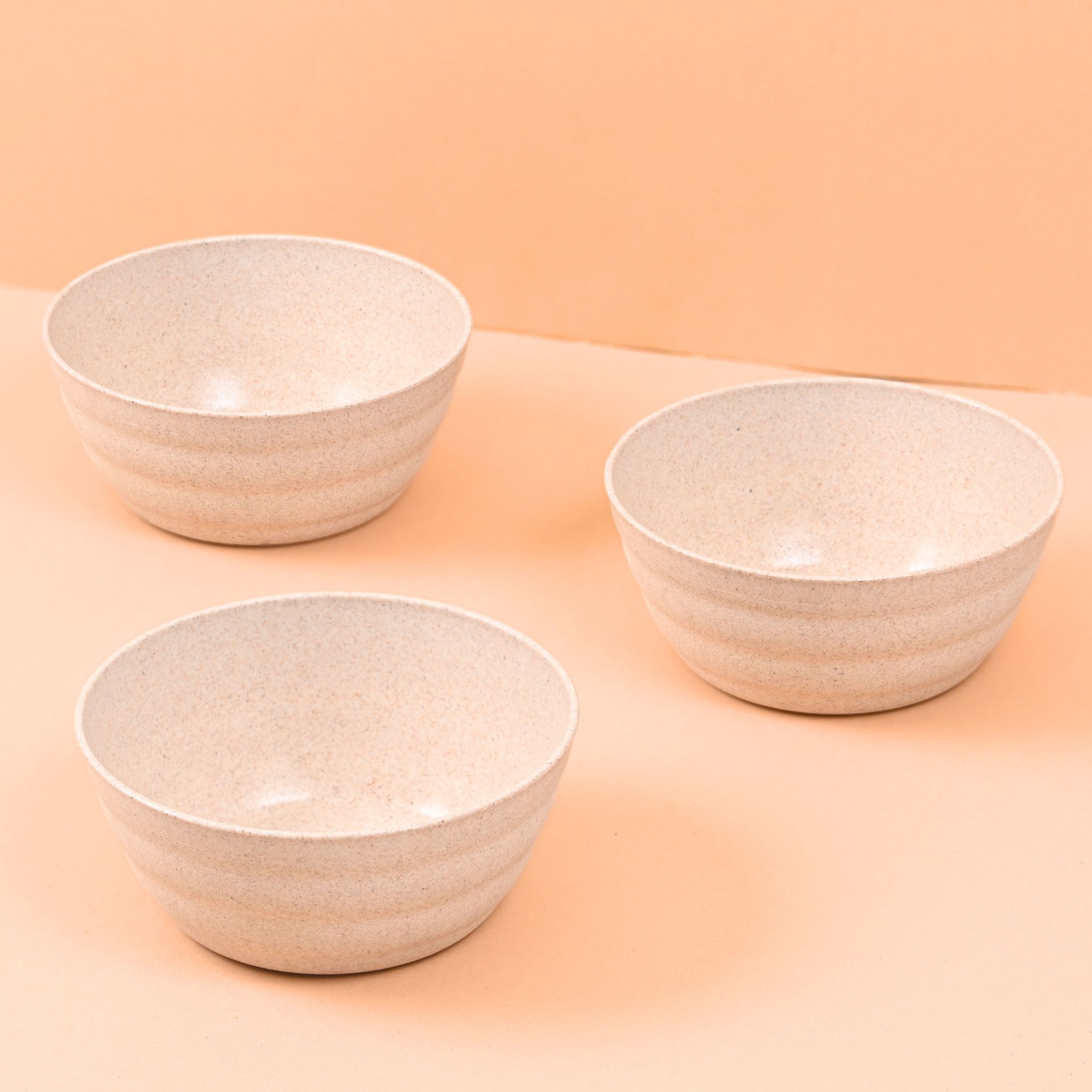 Earth Friendly Bloom Bowl for Serving | Set of 3 | 600 ml | Bowls Made with Rice Husk Biocomposite | Microwave Safe Bowl Set ( Reheat ) | Bowls for Snacks