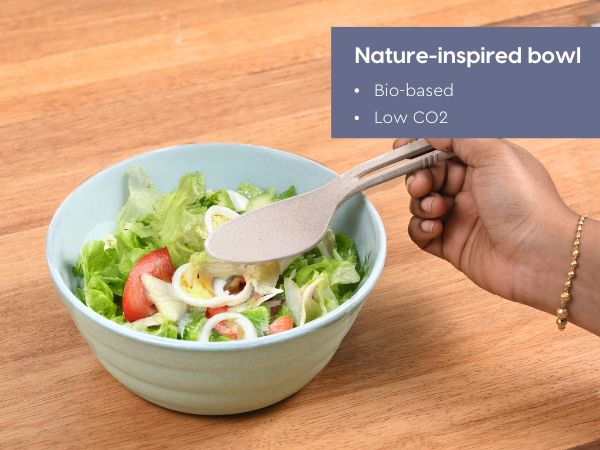 Eha's eco friendly tableware products are made with our proprietary biocomposite materials. Biocomposites used for food contact products are a blend of natural fibers and polypropylene, which is extensively tested and used in healthcare and food industry. They are free from BPA, pthalates, styrene, melamine and PFAS.