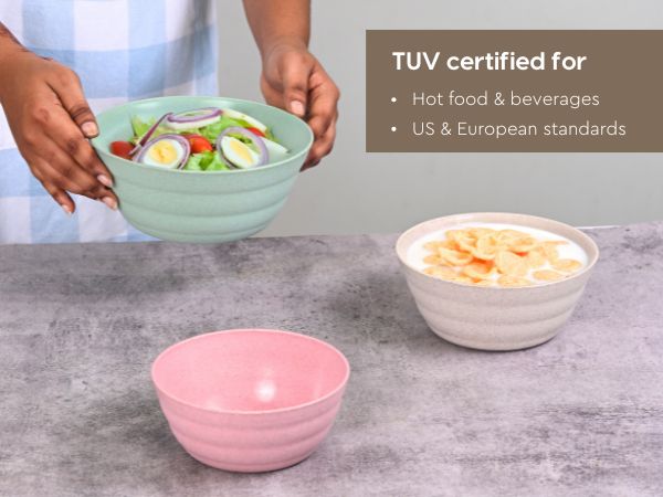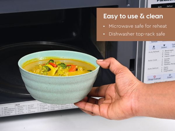 Certified safe as per European, US and Indian standards, our products are free from harmful chemicals like BPA, formaldehyde, and melamine. They are also dishwasher-safe & microwave-safe (for reheat).