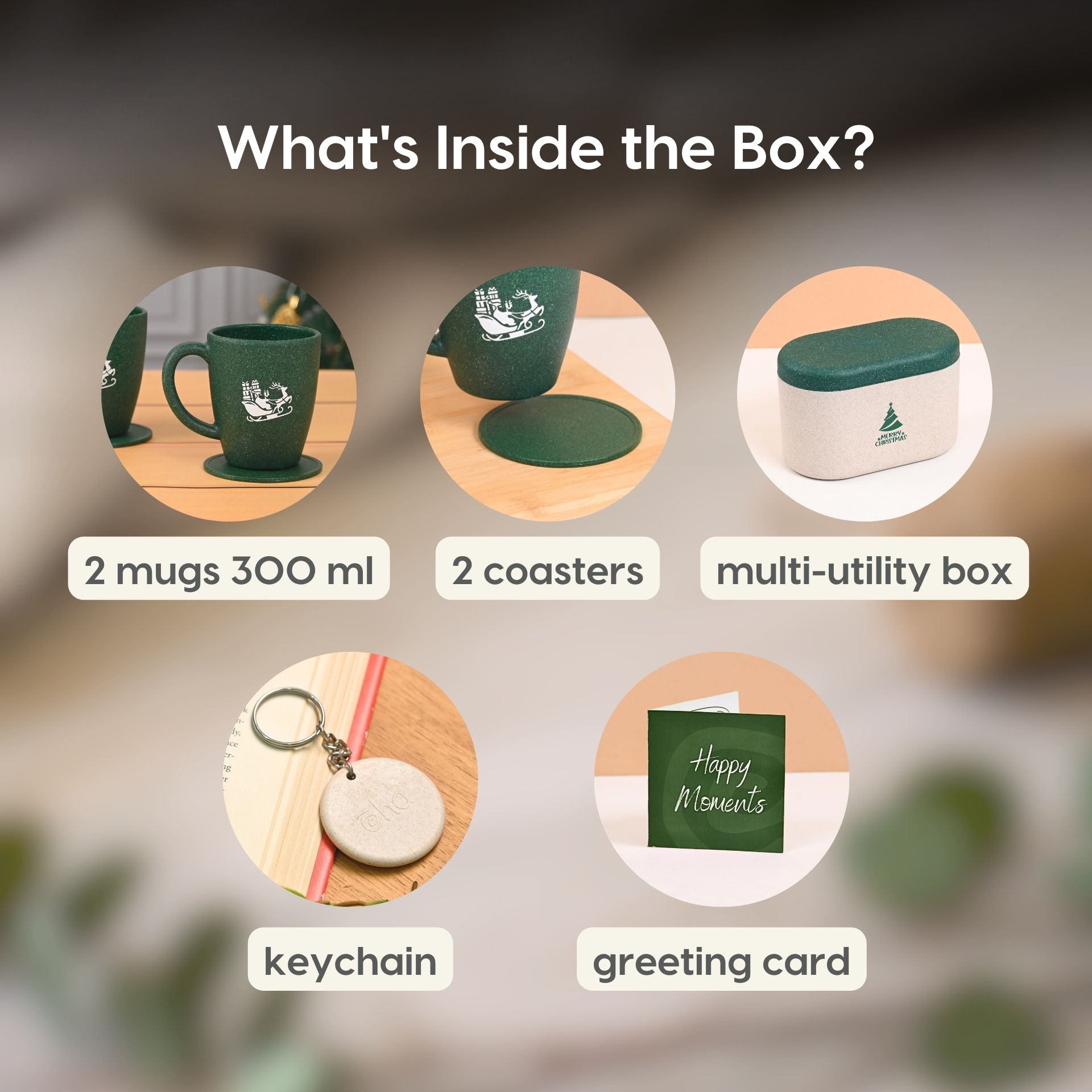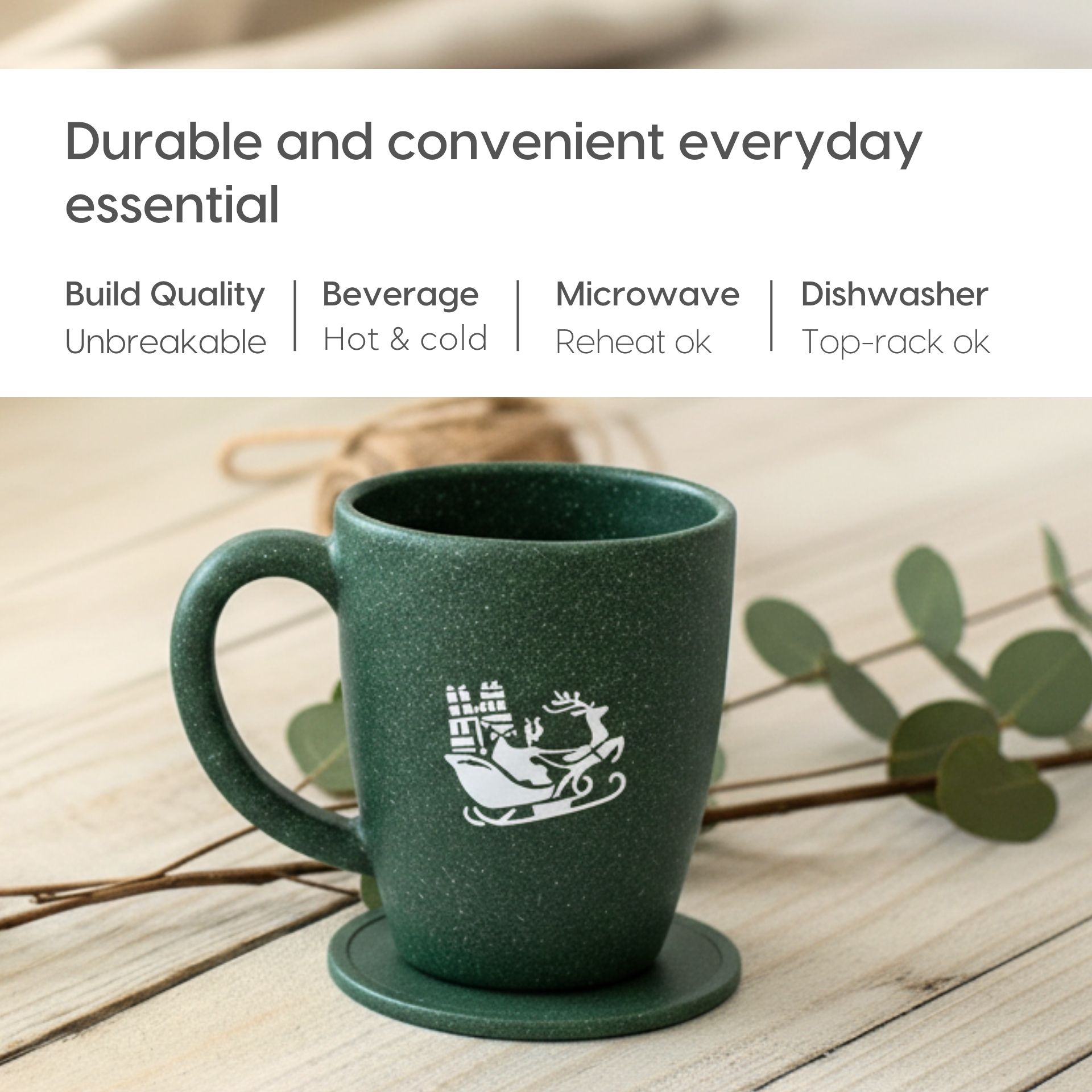 Earth Friendly Christmas Gifts For Family & Friends | Printed Mug and Coasters Set of 2 | Loopac Box | 300 ml | Mugs for Gifts | Made with Rice Husk
