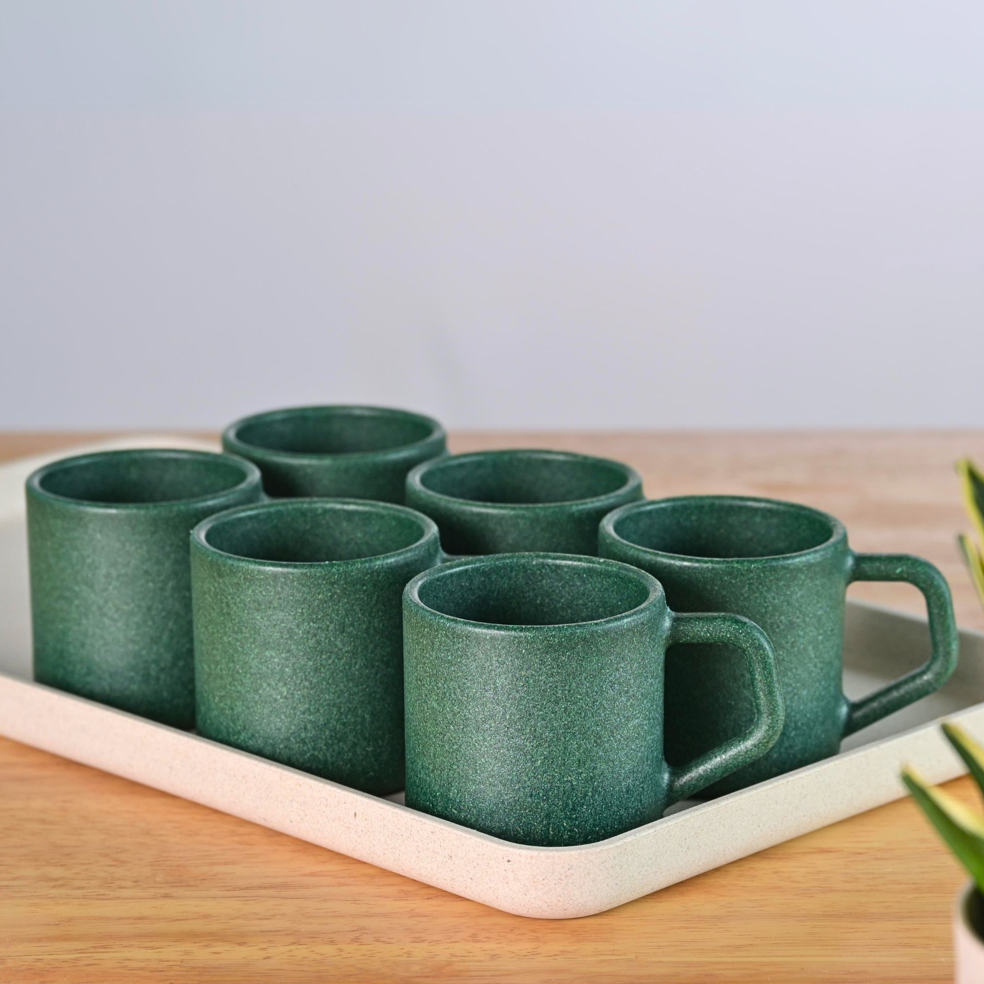 These essential biocomposite tea mug set of 6 is designed to complement every meal. Perfect for serving chai, tea, or any beverage, these earthy rice husk mugs enhance gatherings with friends and family. Crafted from agricultural waste and available in eclectic pastel hues, these sustainable mugs will undoubtedly add charm to any dining table. Go ahead and flaunt this stylish set, showcasing your commitment to eco-friendliness while enjoying your favorite drinks in a delightful way!