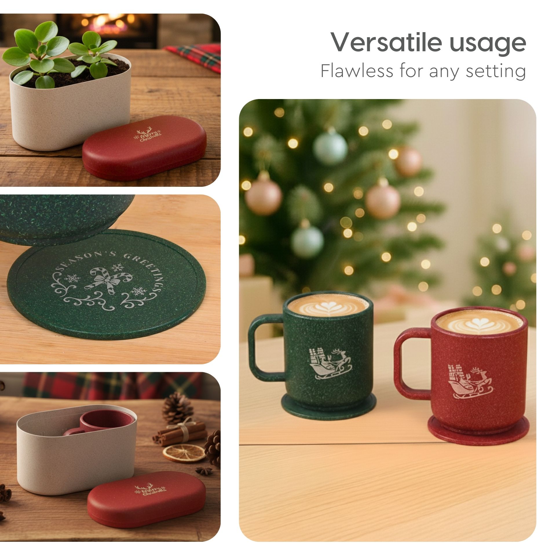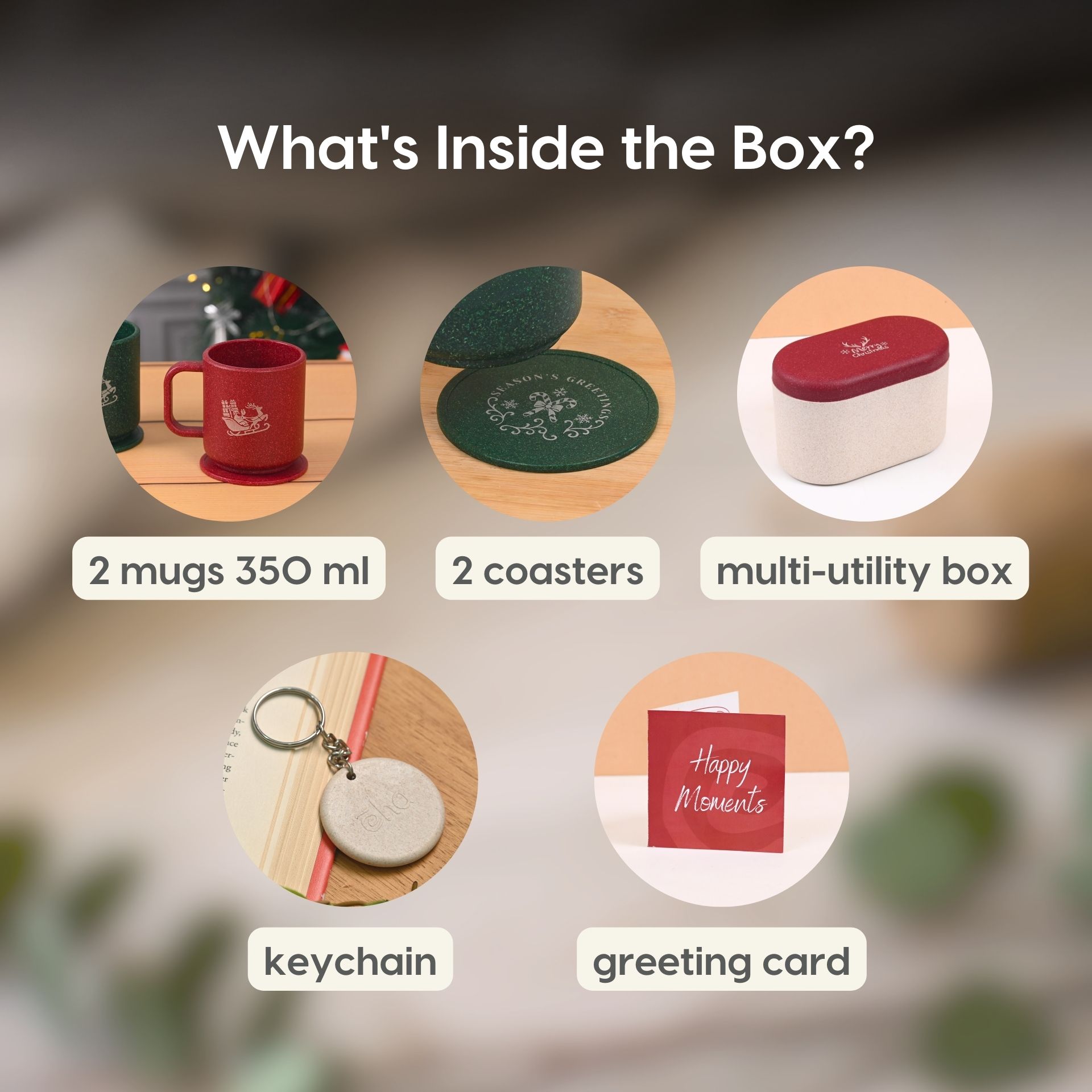 Earth Friendly Christmas Gifts For Family & Friends | Printed Mug and Coasters Set of 2 | Loopac Box | 250 ml | Mugs for Gifts | Made with Rice Husk
