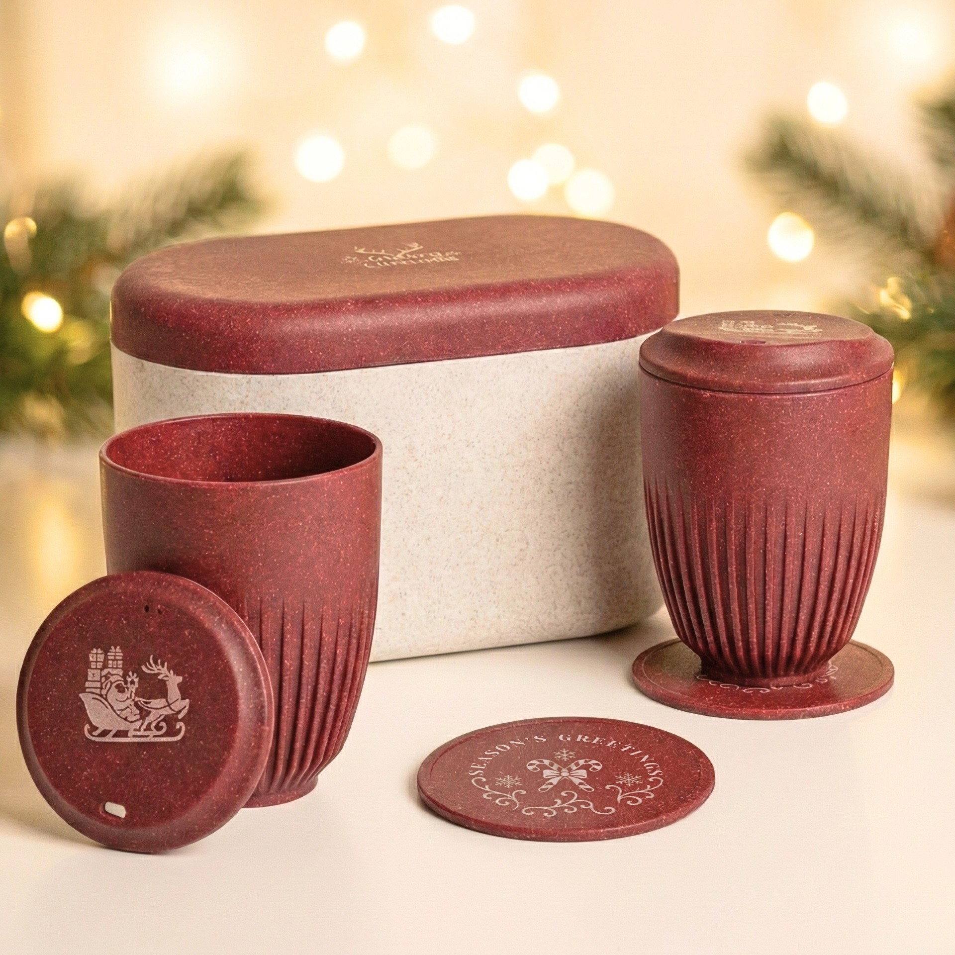 Earth Friendly Christmas Gifts For Family & Friends | Printed Mug and Coasters Set of 2 | Loopac Box | 300 ml | Mugs for Gifts | Made with Rice Husk