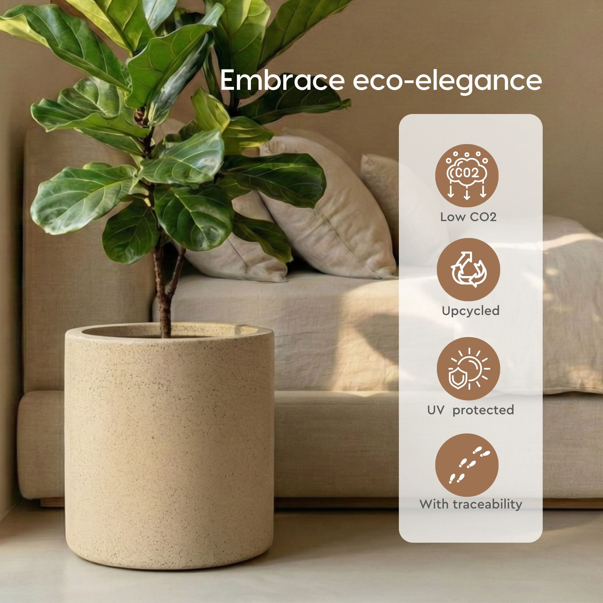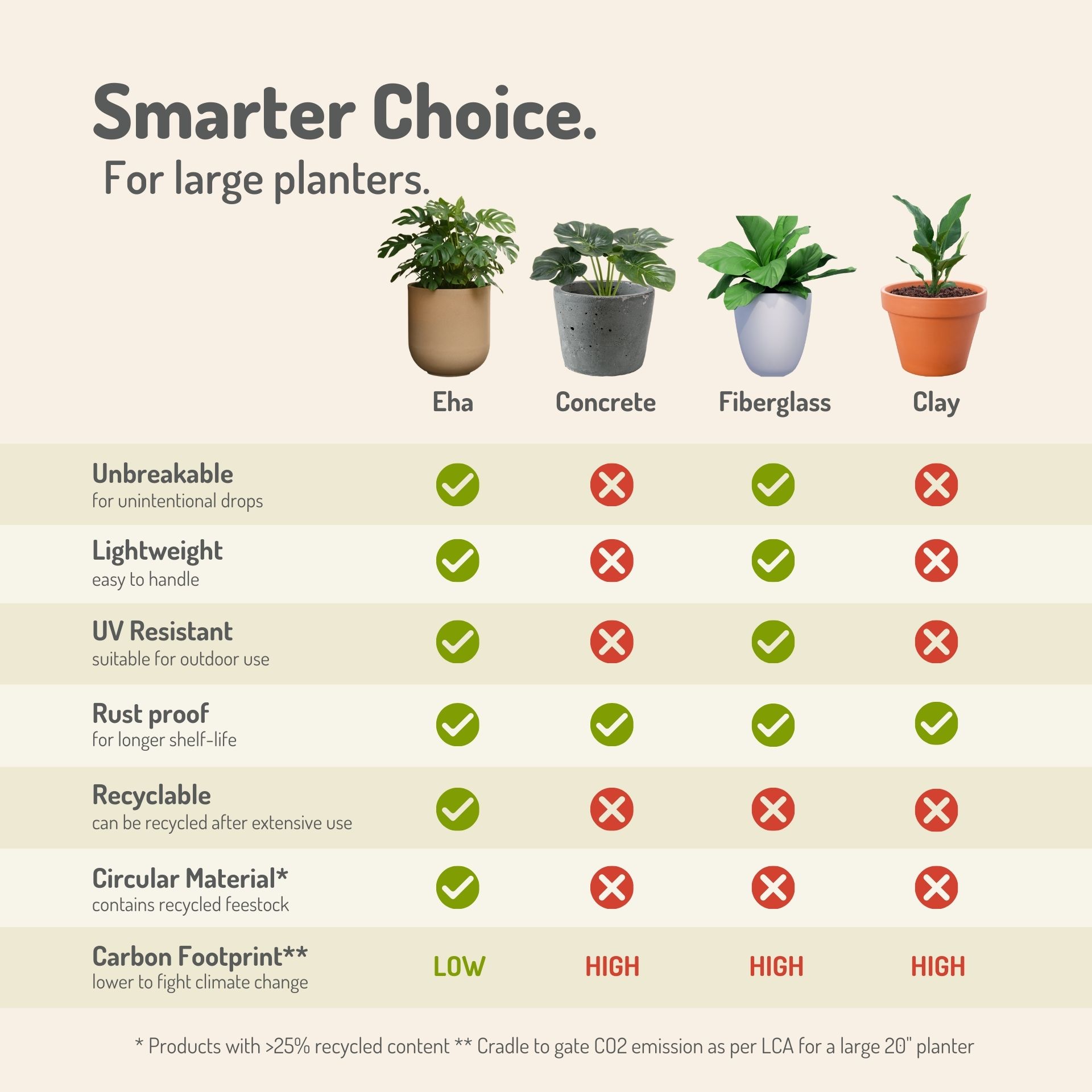 The eha's eco friendly flower pots are made with our proprietary biocomposite materials. The biocomposites material used to make the planter are a blend of natural fibers and recycled plastics, which are impact modified and UV stabilised.