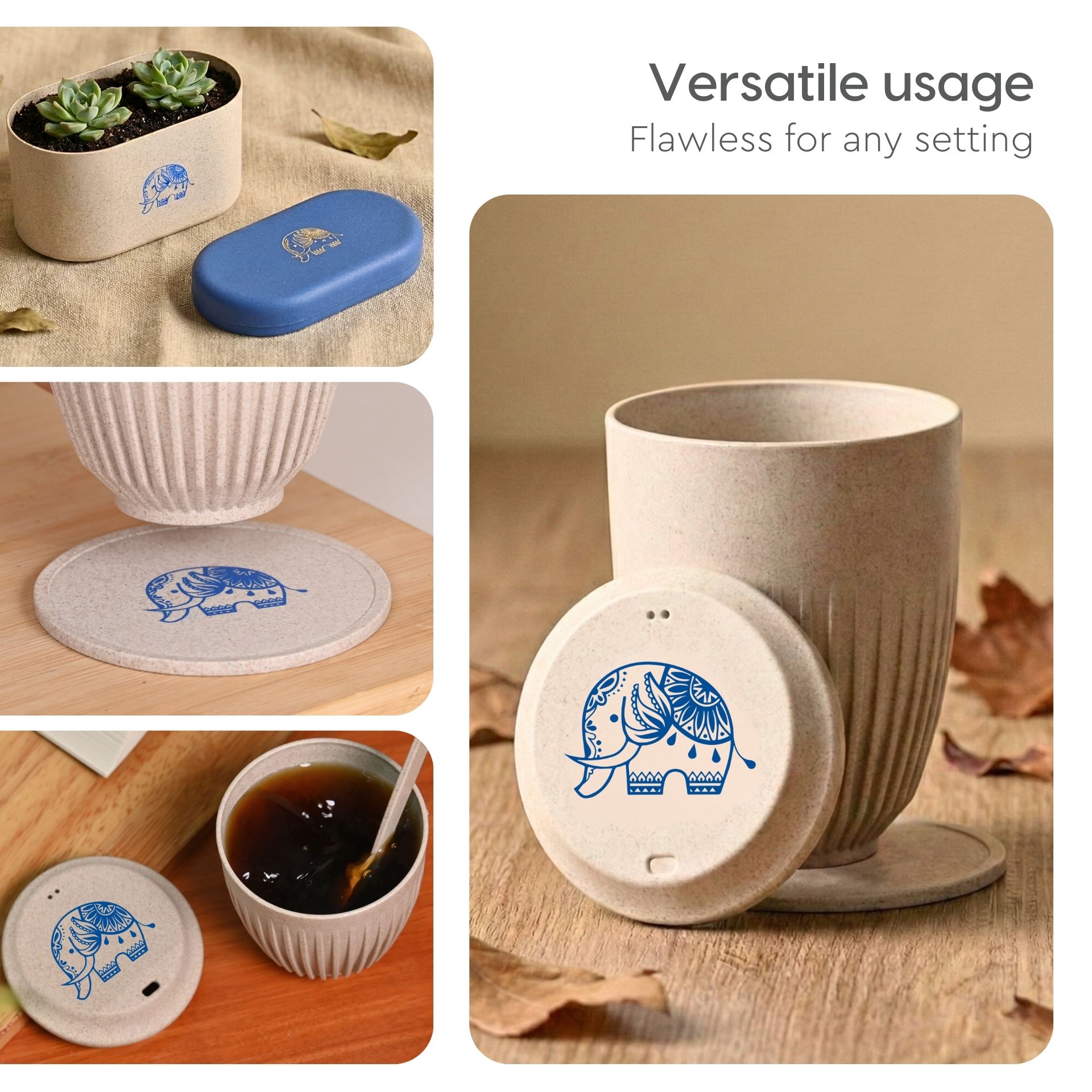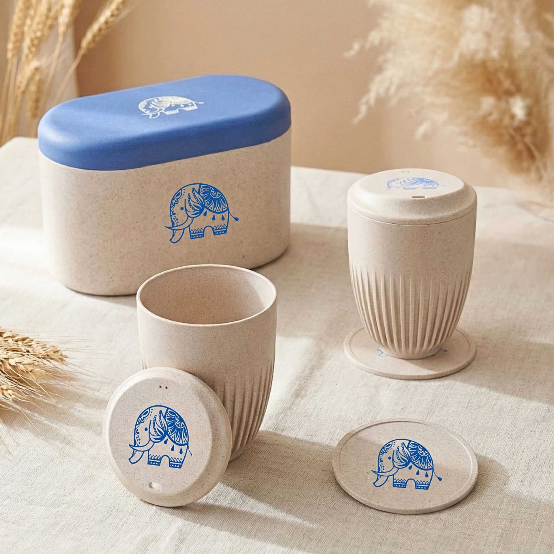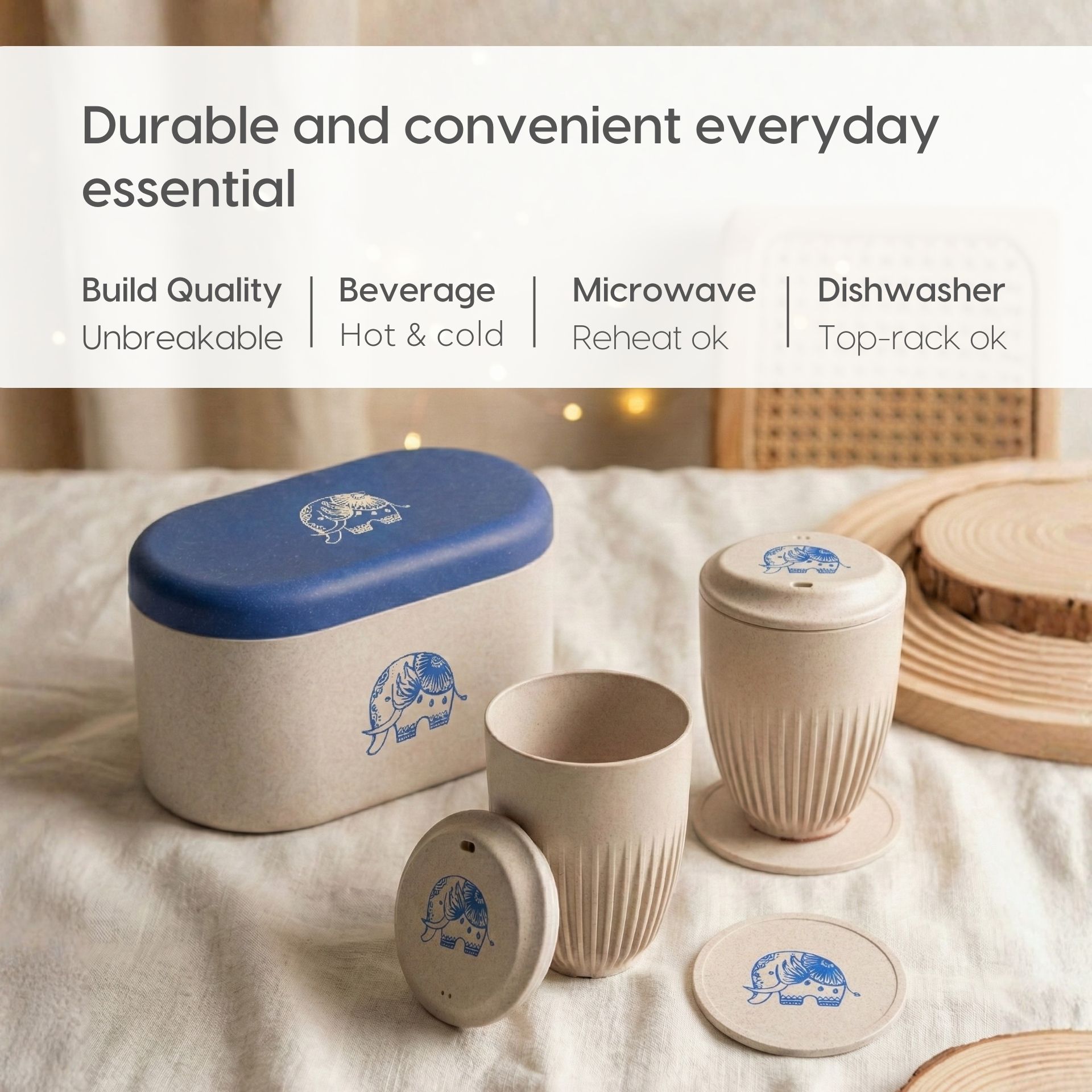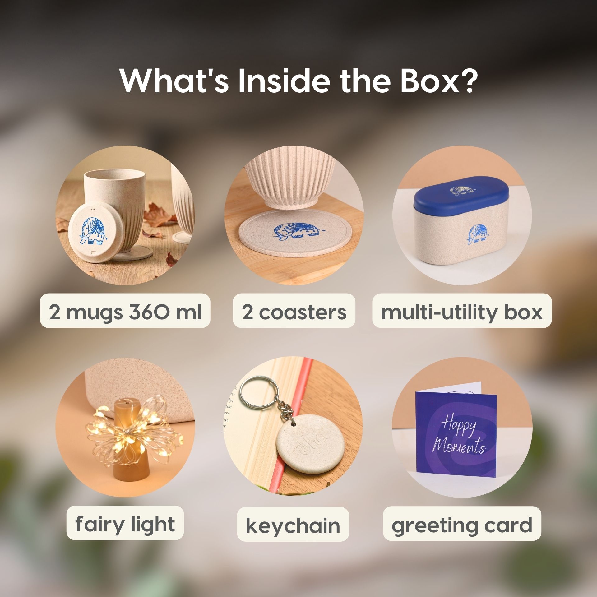 Earth Friendly Gifts For Family and Friends | Elephant Printed Mug and Coasters Set of 2 | Fairy Lights, Keychain, Loopac Box | 360 ml | Mugs for Gifts | Made with Rice Husk