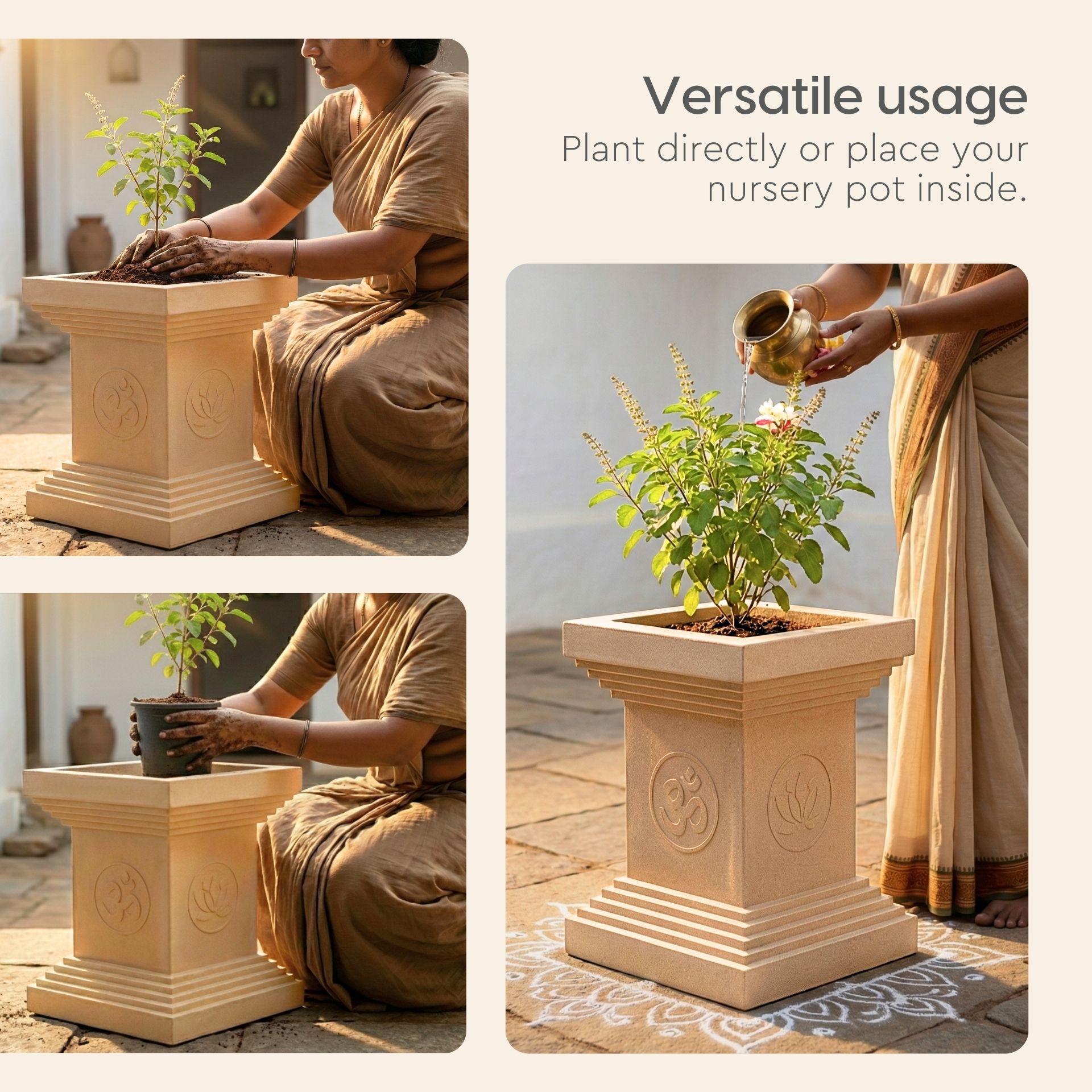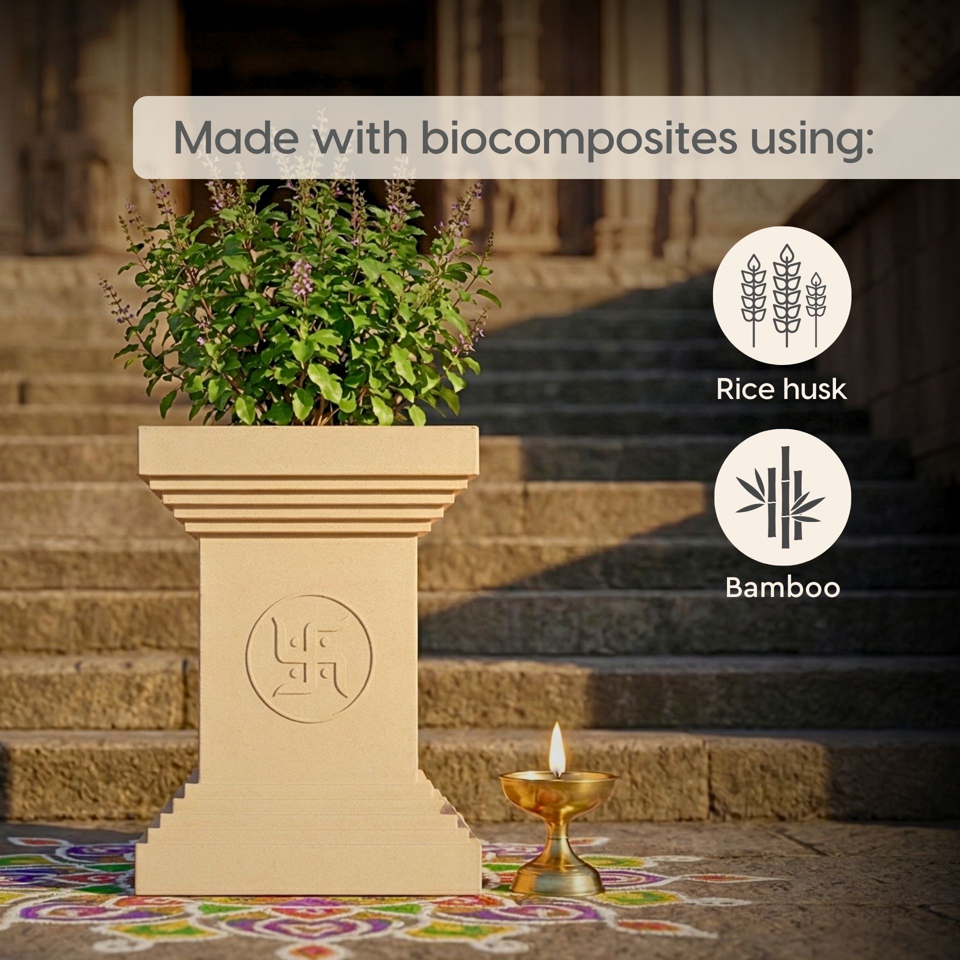 Earth-Friendly Tulasi Pots for Home Big Size | 21 inch | Pack of 1 | Made with Rice Husk Biocomposite | UV Protected | Tulasi Kota Set