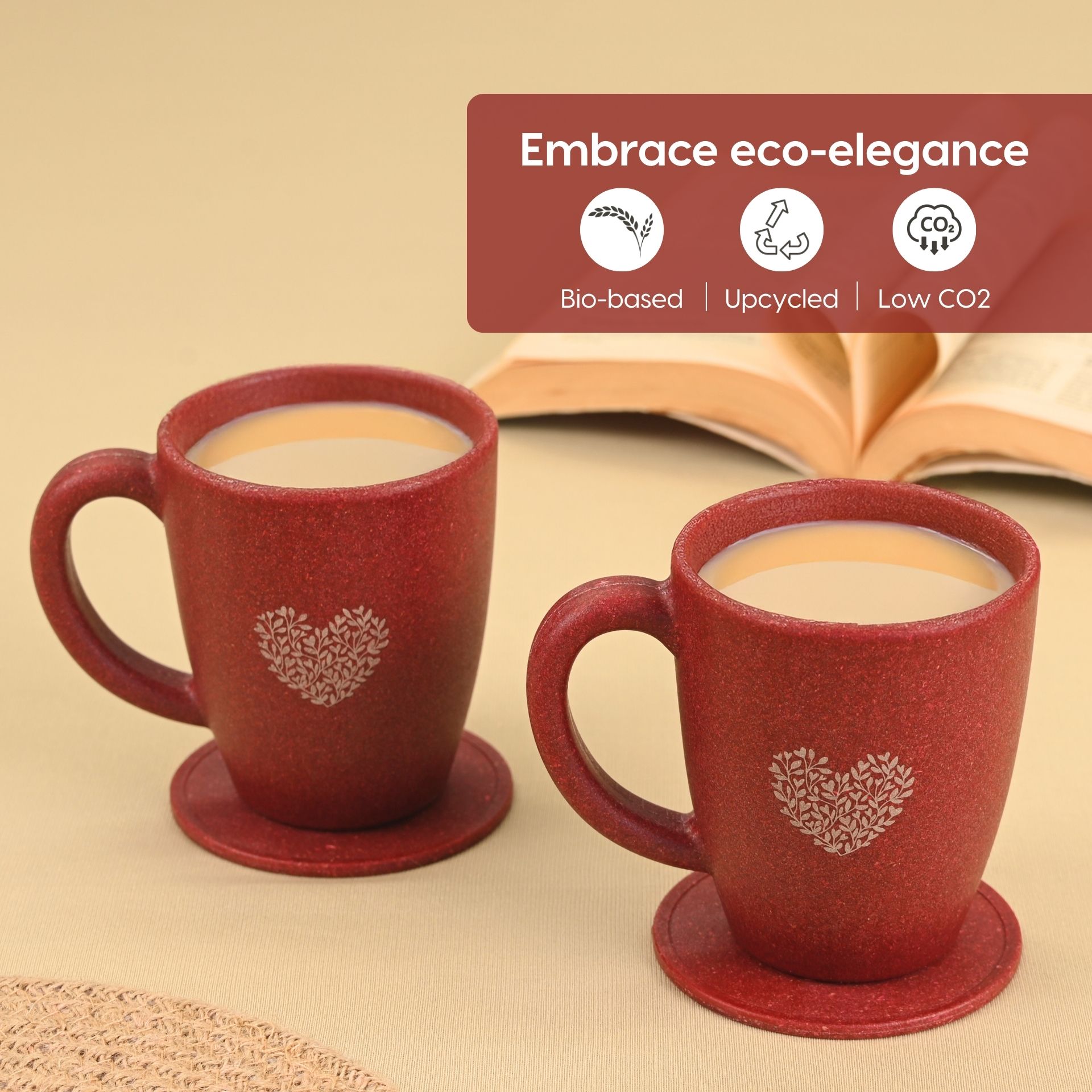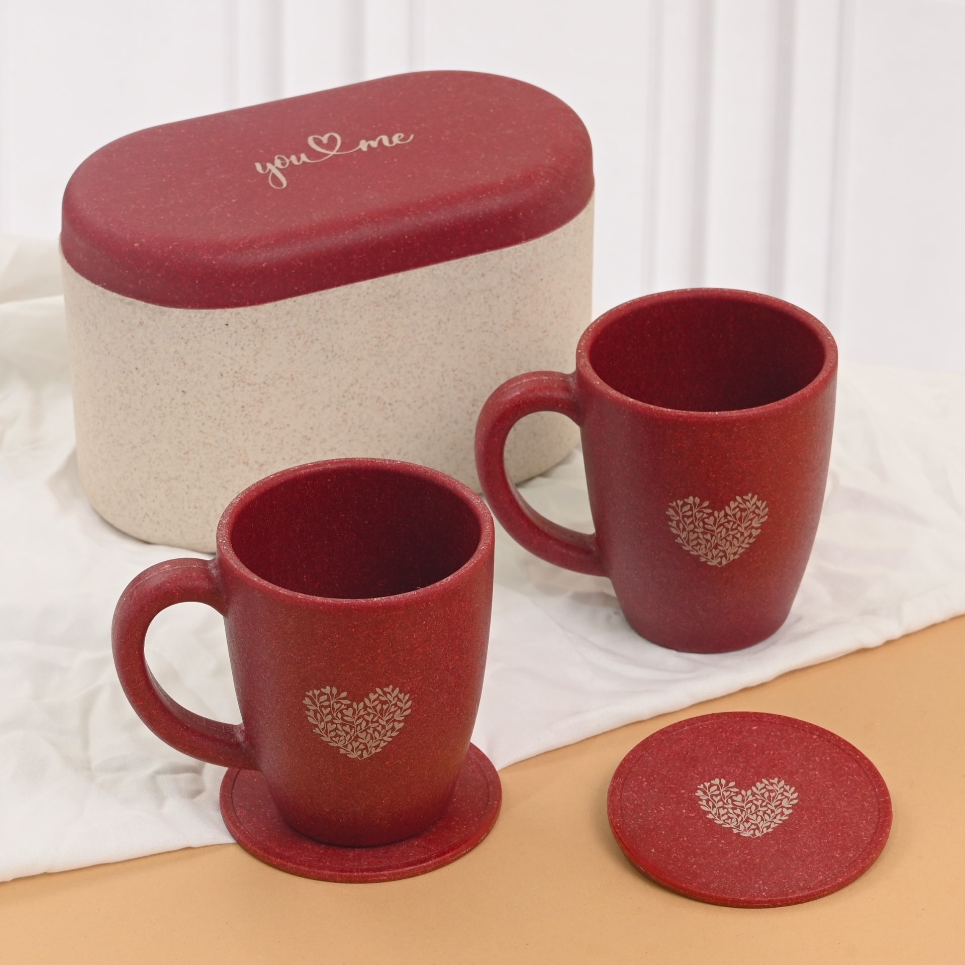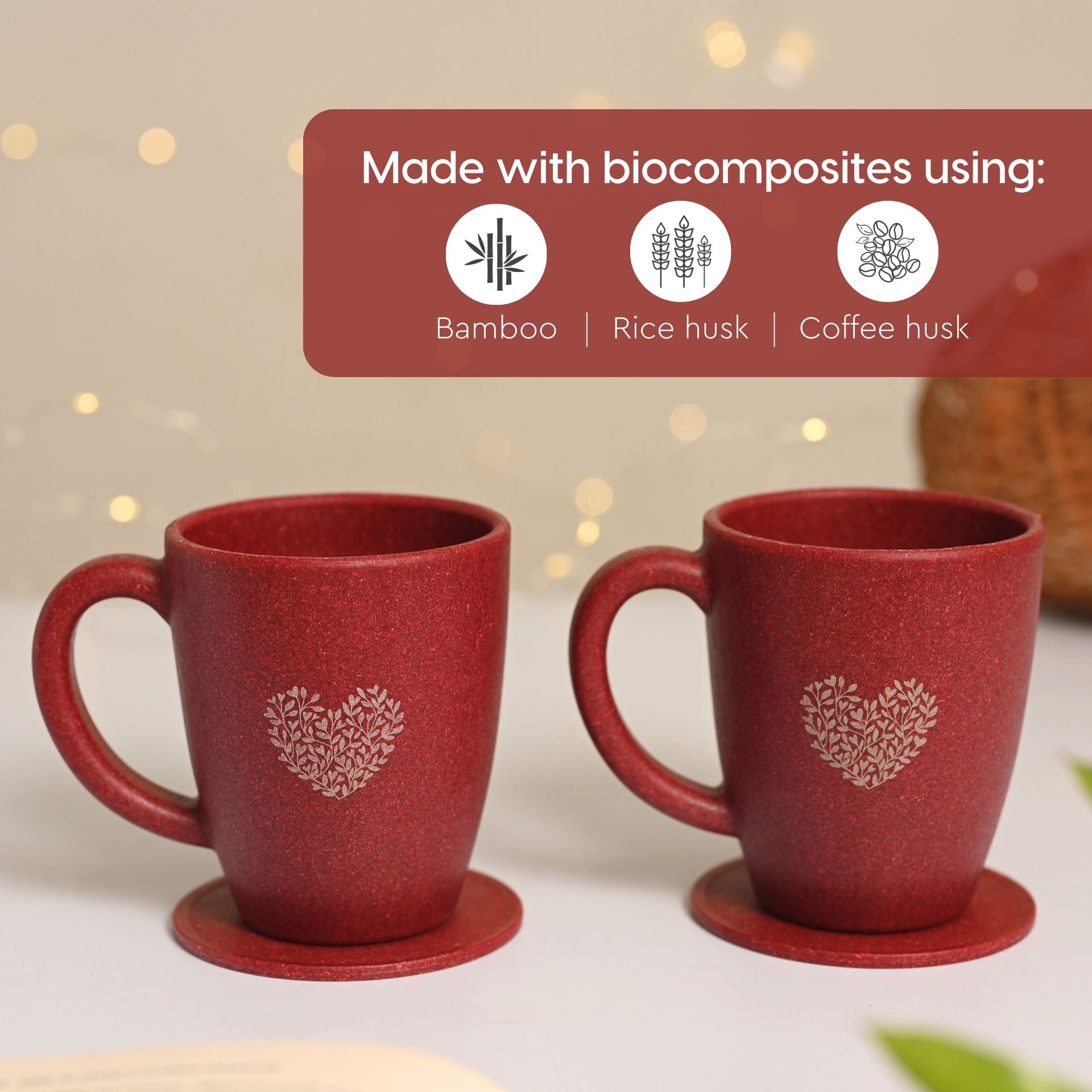 Earth Friendly Valentine Gifts for Couple | Gift for Girlfriend and Boyfriend | Love Gift Set of 2 | 300 ml | Made with Rice Husk and Coffee Husk Biocompoiste