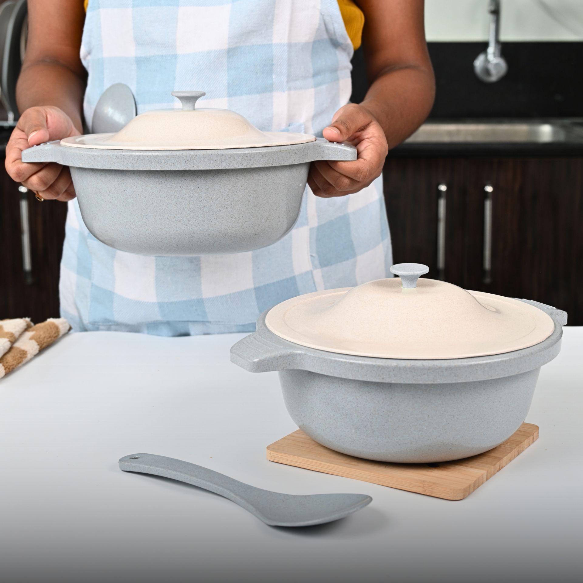 Serving Bowl with lid 1250 ml set of 2 | Earth friendly Unbreakable bowls Made with Bamboo Fibers & Rice Husk Fiber | Microwave and fridge Safe bowl| for Hot & Cold servings